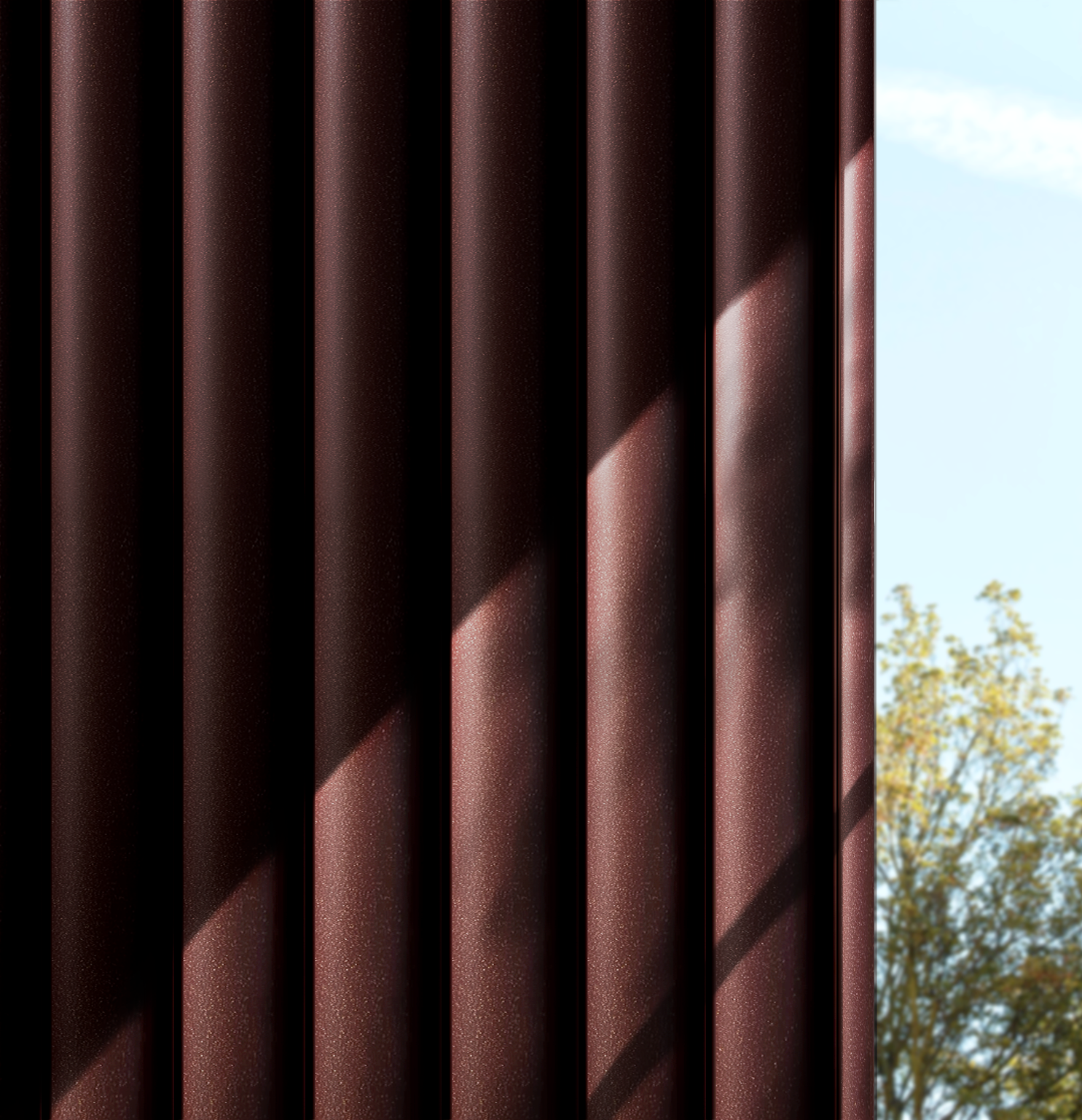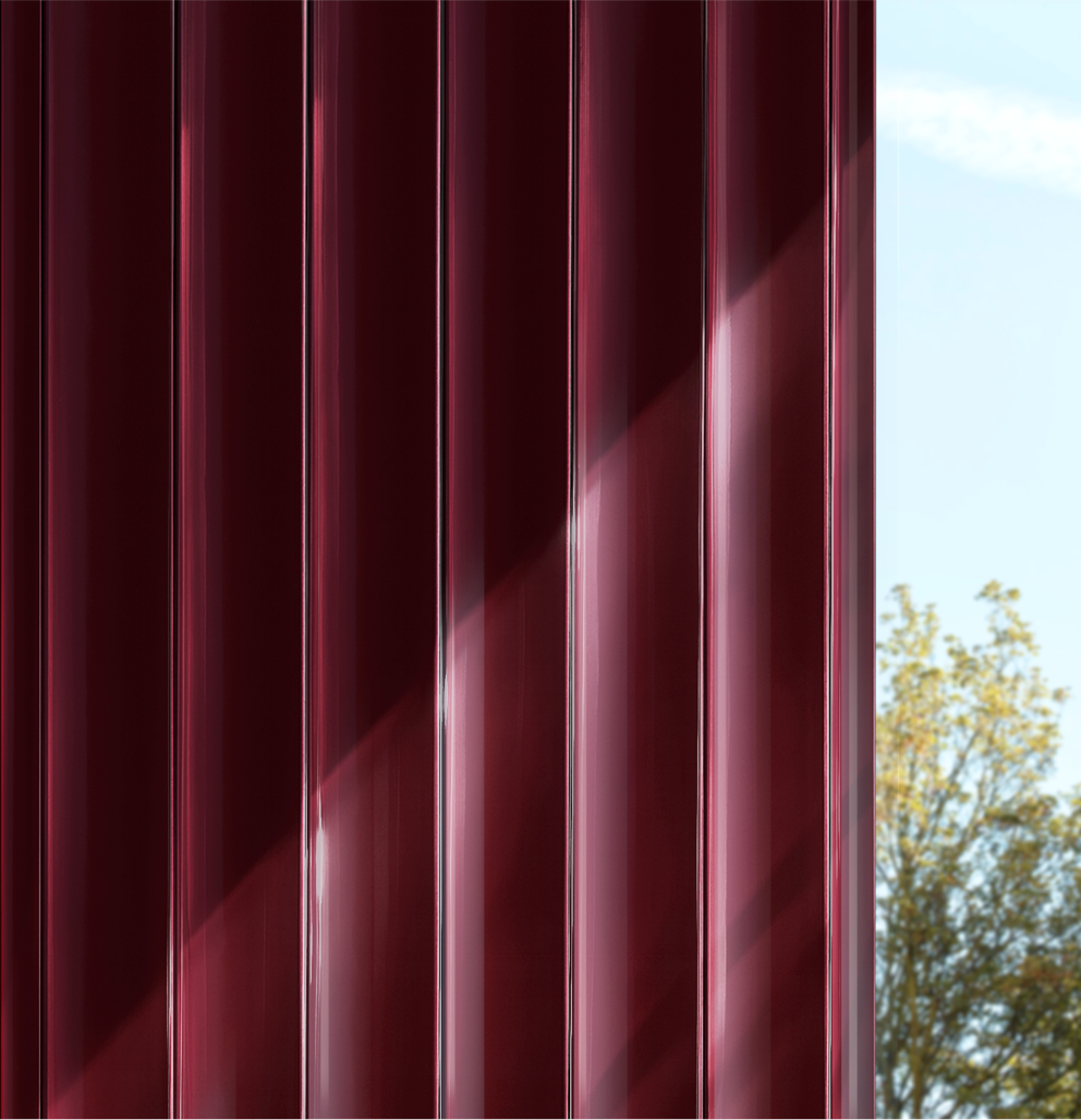 Cor de caráter majestoso, com brilho sofisticado e profundidade cromática. Seu tom roxo escuro traz uma sensação de exclusividade e autoridade elevada à forma arquitetônica.