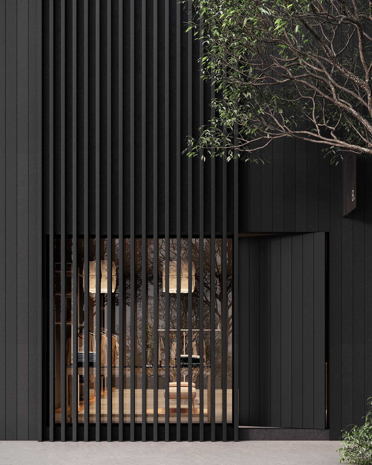 Paredes de destaque, espaços de mobilidade, lobby e residência